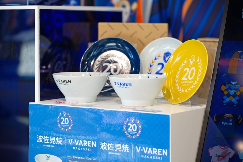 今年、コモンの販売元である西海陶器株式会社(長崎県東彼杵郡・波佐見町)がV・ファーレン長崎のスポンサーとしてパートナーシップを結んだことからご縁がつながり、コモンのプレートと丼にロゴを転写した20周年のグッズを制作いただきました。