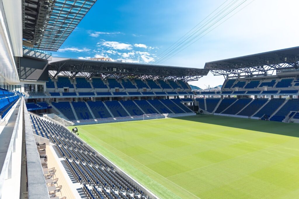 「ホテルからの眺めもそうですが、このスタジアムは天井が開いていて、風の抜ける造りになっています。そうすることで敷居を下げ、ライト層の方が足を踏み入れやすくなるメリットがあります。一方で、歓声が上がっても外に抜けてしまうんですよね。観客の方の熱量をもう一段階上げるようなものすごい熱狂を、クラブ側がつくり出さないと。